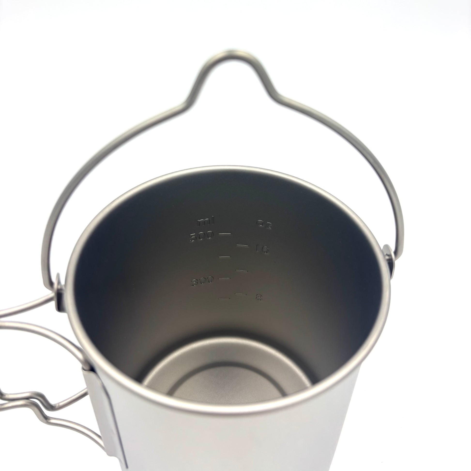 This item can be used as a cup or as a pot. It is made of titanium. Lightweight, corrosion-resistant and durable. It features volume markings, folding handles, a lid with a tab, and a top bracket. It comes with a mesh storage bag for convenient storage and travel.