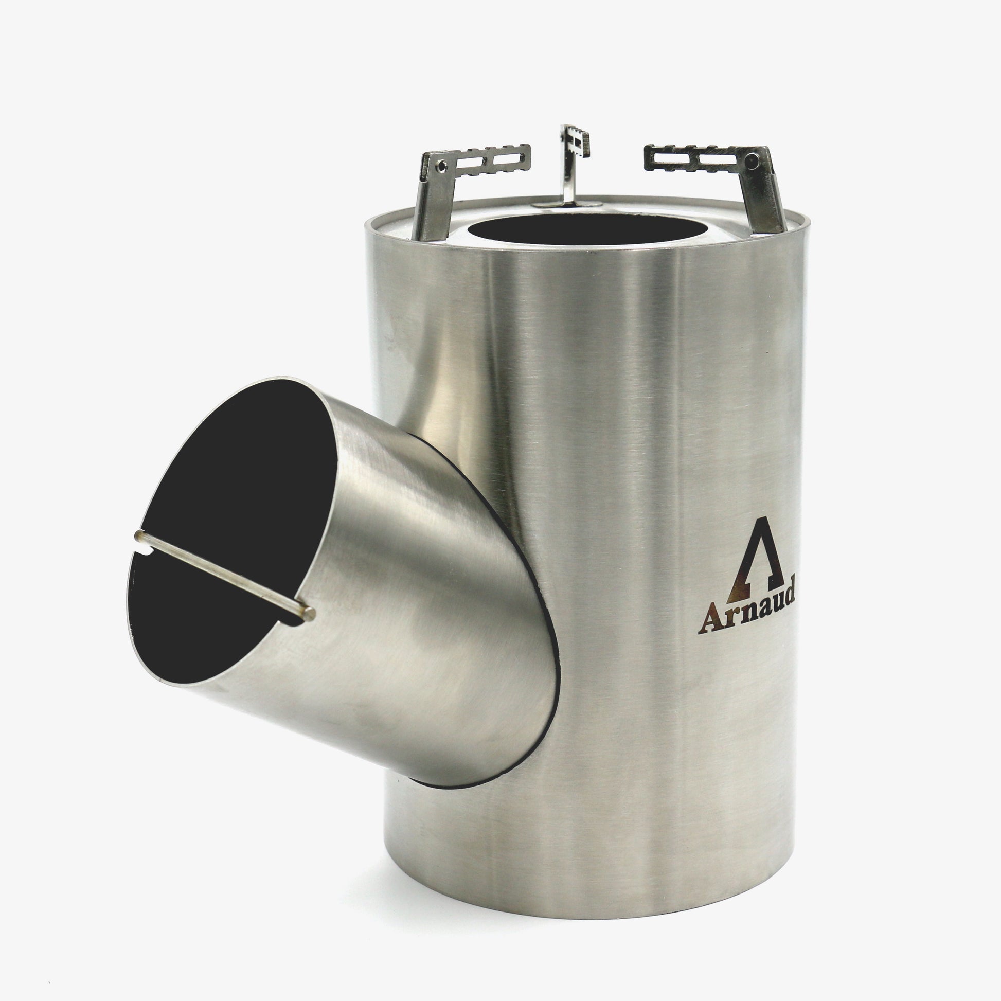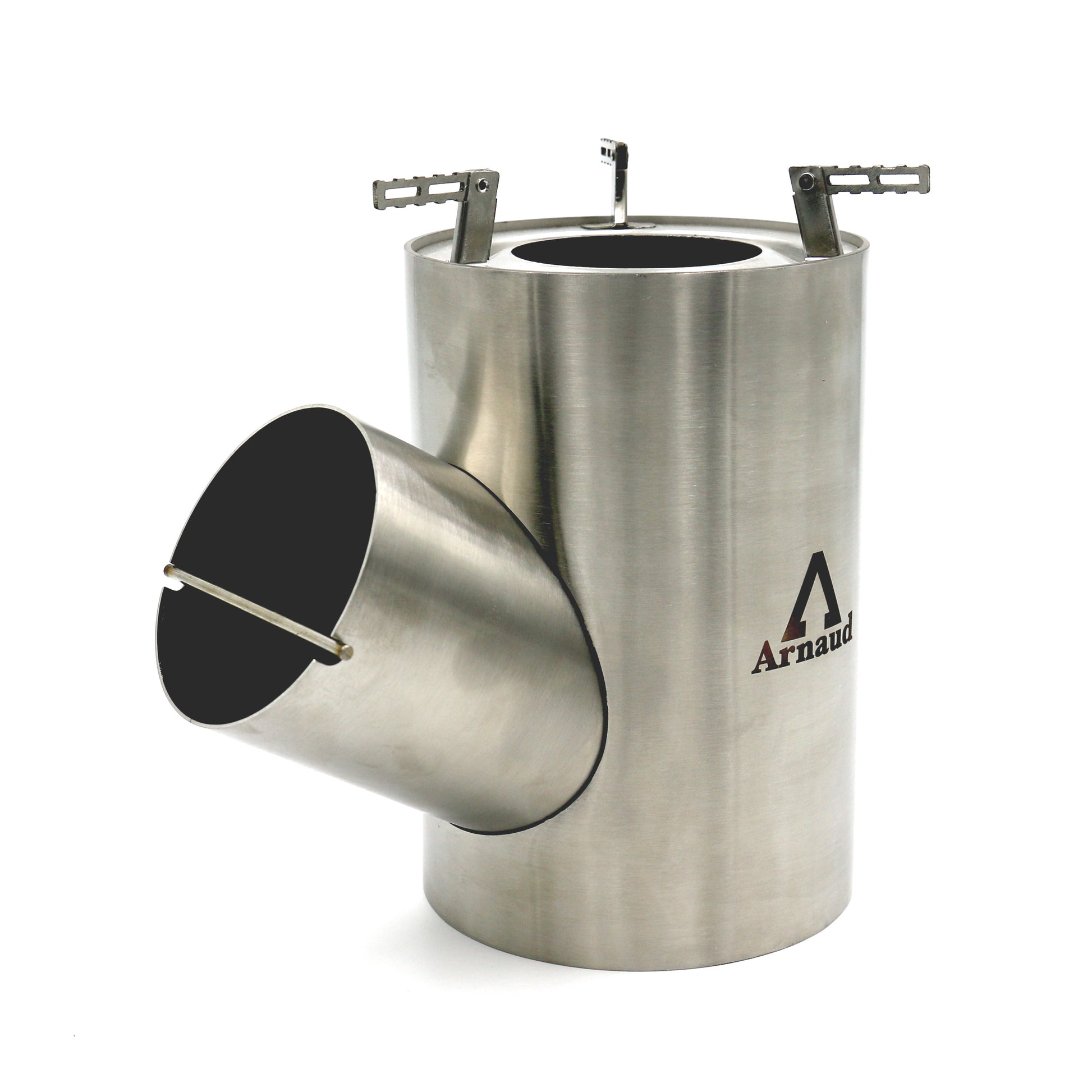 As fuel for the stove, we recommend you to use things you find in nature: wood, twigs, … Thanks to the side tube, you can always add fuel to the rocket stove. Additionally, the 30° angle enables the rocket stove to feed itself.